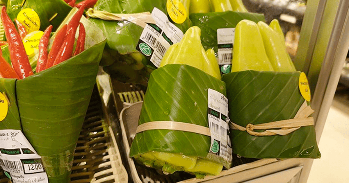 Тайландын “Rimping” хэмээх супермаркет нэгэн өвөрмөц санааг гаргасан юм. Энэ нь навчийг гялгар уутны оронд хэрэглэх юм.