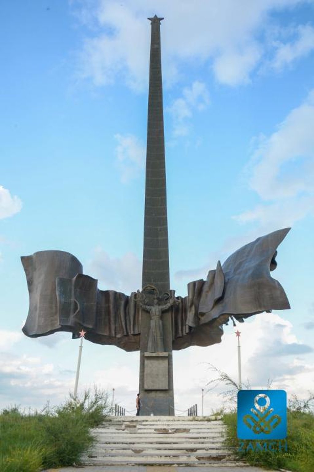 Монгол Зөвлөлтийн баатарлаг дайчин мөнхийн гавьяат үйлсэд зориулан Халхголын ялалтын 45 жилийн ойг тохиолдуулан 1984 онд Хамар даваанд энэ хөшөөг босгожээ. Тус хөшөөг дан аранжин зэсээр барьж байгуулсан бөгөөд 50 метр өндөр, 33м өргөнтэй аж. Гол баганын нүүрэн талд нь мөр зэрэгцэн зогссон Монгол Зөвлөлтийн хоёр цэрэг байх ба нөгөө талд нь хадаг барин зогсох монгол эмэгтэйн дүрсийг урлажээ. Хөшөөний гол баганын хоёр талын зэс цутгамал туган дээр байлдаанд оролцсон морин болон явган цэрэг, танкчид, нисгэгчдийн дүр, зэвсэг техникийг товойлгон дүрсэлсэн байна.