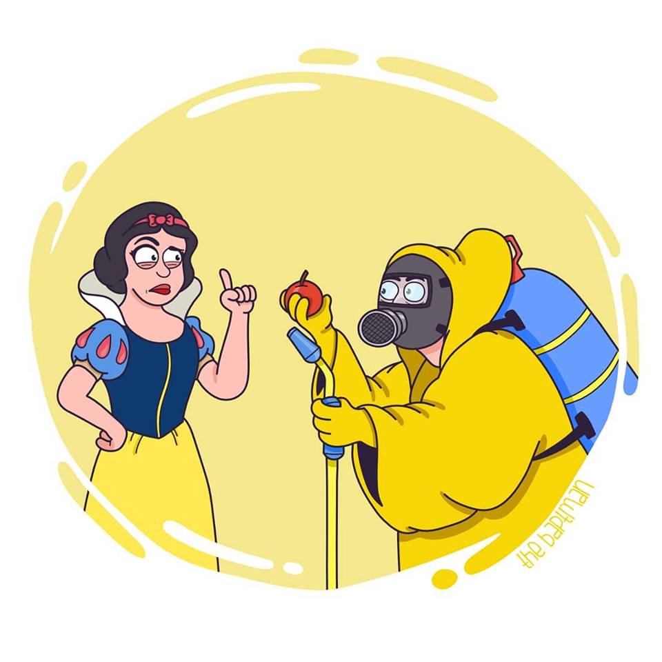 Францын комик зураач Баптист Друсин (Baptiste Drausin) нь Диснейн баатруудын дүрийг ашиглан утга бүхий зургуудыг сошиал хуудаснууддаа нийтэлсэн байна.