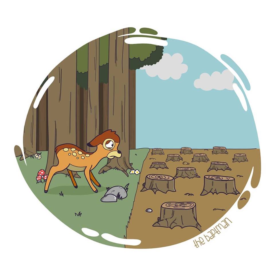 Тэрээр энэ зургуудаараа дэлхийн дулаарал, агаарын бохирдол, хууль бусаар мод тайрах, хог хаягдал далайд хэрхэн нөлөөлж байгаа талаар сэдвийг хөндөн зурсан аж. Хүмүүсийн буруутай үйлдлээс болж дэлхийн тэнцвэр сүүлийн жилүүдэд хурдацтай алдагдсаар байна.
