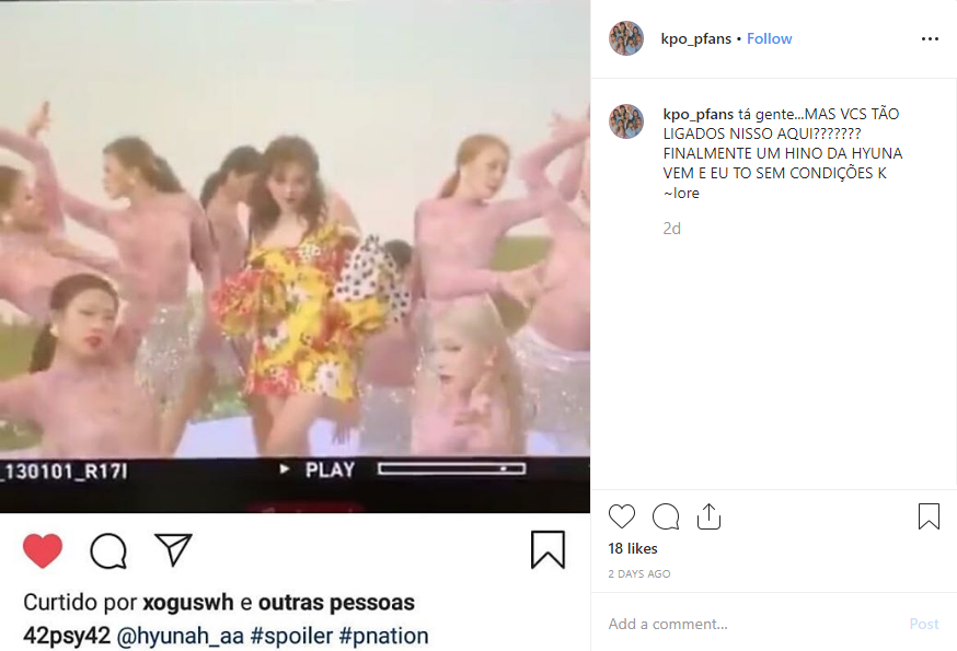 "P Nation" энтэртайментийн үүсгэн байгуулагч PSY инстаграмдаа доорх бичлэгийг оруулсан бөгөөд #Hyunah_aa #spoiler гэсэн хаштаг хийжээ.