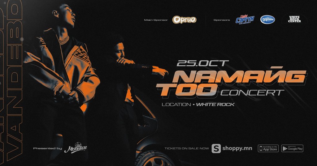 Өнөөдөр буюу 2019 оны аравдугаар сарын 25-нд 19:00 цагаас Үндэсний соёл амралтын хүрээлэнгийн "White Rock Center"-д Vandebo хамтлагийн "Намайг тоо" тоглолт болно.