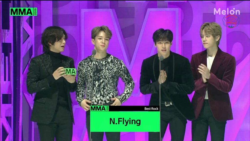 3. N.Flying хамтлаг ёслолын гурав дахь үзүүлбэрийг үзүүллээ. Тэд анх 2010 онд Япон улсад “Basket" дуугаараа урлагийн гараагаа эхлүүлж байсан бол Солонгос улсад 2015 оны тавдугаар сарын 20-нд “Awesome” нэртэй дуугаараа дебют хийсэн байдаг. Амьд хөгжим болон гайхалтай хоолойн хослолыг мэдрүүлсэн үзүүлбэрээрээ сонсогчдодоо бэлэг барьсан энэхүү хамтлаг "MMA-2019" ёслолд “Rooftop”, “Goodnight” зэрэг дуунуудаа дуулжээ. Мөн энэ жил “Шилдэг Рок Дуу” төрөлд “Rooftop” дуугаараа ялалт байгуулсан аж.