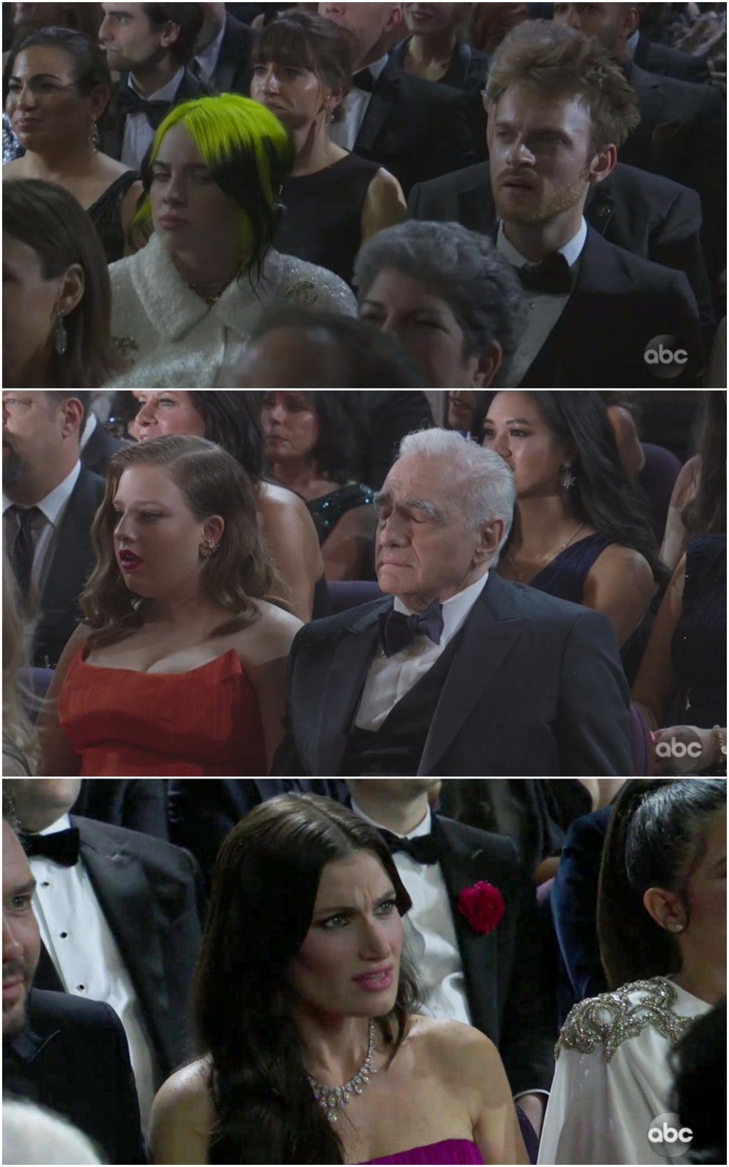 Ёслолын тайзнаа “Шилдэг дуу” төрөлд нэр дэвшсэн уран бүтээлчдээс гадна реппэр Eminem "Lose Yourself" дуугаараа хүрэлцэн ирсэн зочдын сонорыг мялаасан. Тэрээр энэхүү дуугаараа 75 дахь Академийн шагнал гардуулах ёслолоос "Шилдэг дуу" шагналыг хүртэж байсан билээ. Харин Billie Eilish, Finneas O' Connell, Martin Scorsese, Idina Menzel нарын энэхүү үзүүлбэрт үзүүлсэн хариу үйлдэл олныг хөгжөөж байна.