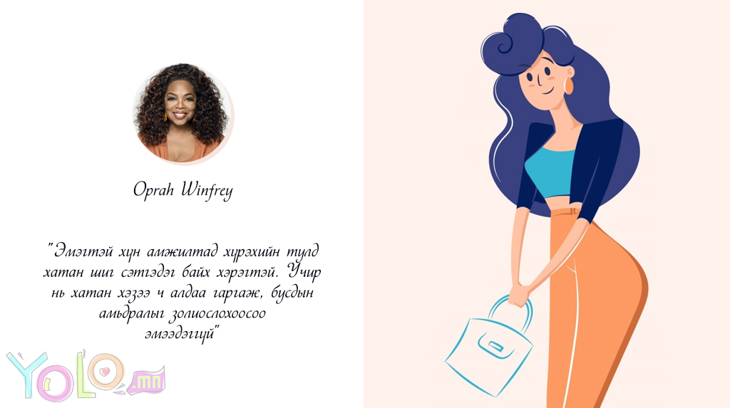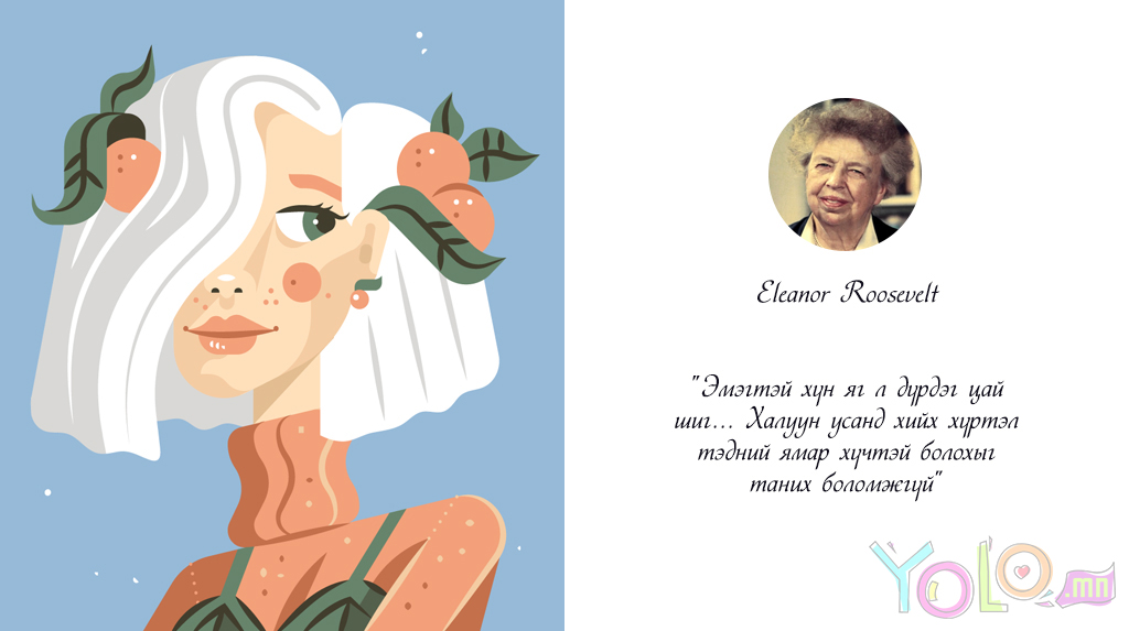 Олон улсын эмэгтэйчүүдийн эрхийг хамгаалах өдрийг тохиолдуулан охид бүсгүйчүүддээ урам зориг өгөх, ямар гайхалтай нэгэн болохыг тань илтгэх эшлэлүүдийг хүргэж байна.