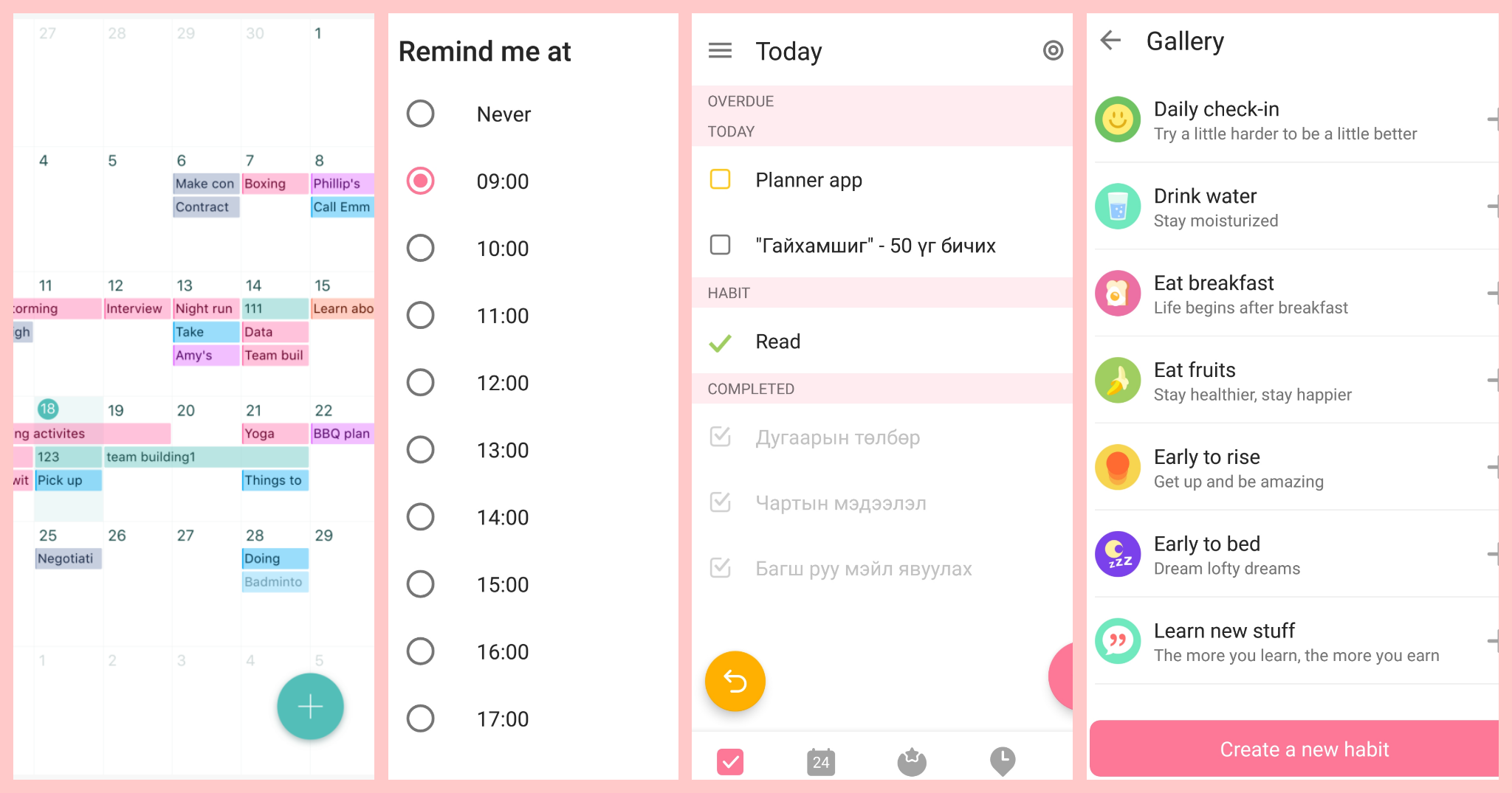 Олон хүмүүс орой унтахаасаа өмнө маргааш хийх ажлаа төлөвлөдөг гэж бодож байна. Би ч тэдгээр хүмүүсийн нэг нь... Гэхдээ саяхнаас “TickTick” нэртэй төлөвлөгч аппликейшн ашигладаг болсон. Заримдаа бид толгойдоо төлөвлөсөн зүйлээ мартчихдаг бол заримыг нь зүгээр л шалтгаангүйгээр хийхгүй орхичихдог шүү дээ. Харин энэ аппликейшныг хэрэглэж эхэлснээс хойш цагийг их л үр бүтээлтэй өнгөрүүлдэг болсон. Сэтгэл дагаад тэр юм уу гэвэл ҮГҮЙ ээ. Учир нь энэ аппликейшн миний төлөвлөсөн ажлын гүйцэтгэл болон дутуу үлдээсэн ажлыг улаанаар тэмдэглээд гаргаад ирдэг. Тийм болохоор бүх төлөвлөсөн зүйлээ аль болох хугацаанд нь хийхийг хичээдэг болсон доо. Бүх зүйлээ төлөвлөж, эмх цэгцтэй байх нь хэчнээн амар байдаг гээч!
