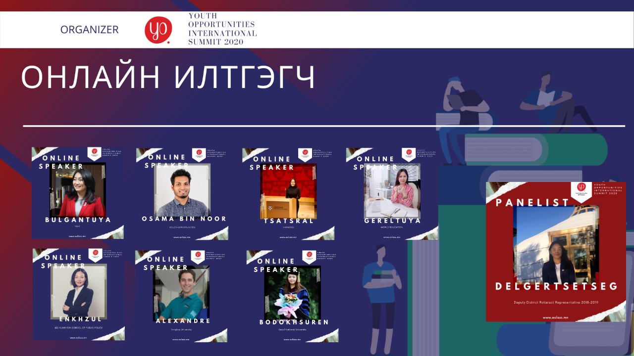 Youth Opportunities International Summit 2020 олон улсын арга хэмжээ хоёр дах жилдээ ОНЛАЙН хэлбэрээр зохион байгуулагдах гэж байна. Дэлхий дүүрэн олон боломжуудыг хэрхэн хайх, хамрагдах, юунд анхаарах талаарх маш дэлгэрэнгүй ойлголтуудыг авч гадаад дотоодыг шилдэг мэргэжилтэнгүүдийн мэдээлэл, зөвлөгөө, мэдлэгийг нэг дороос авах боломжийг энэхүү арга хэмжээ танд олгоно.