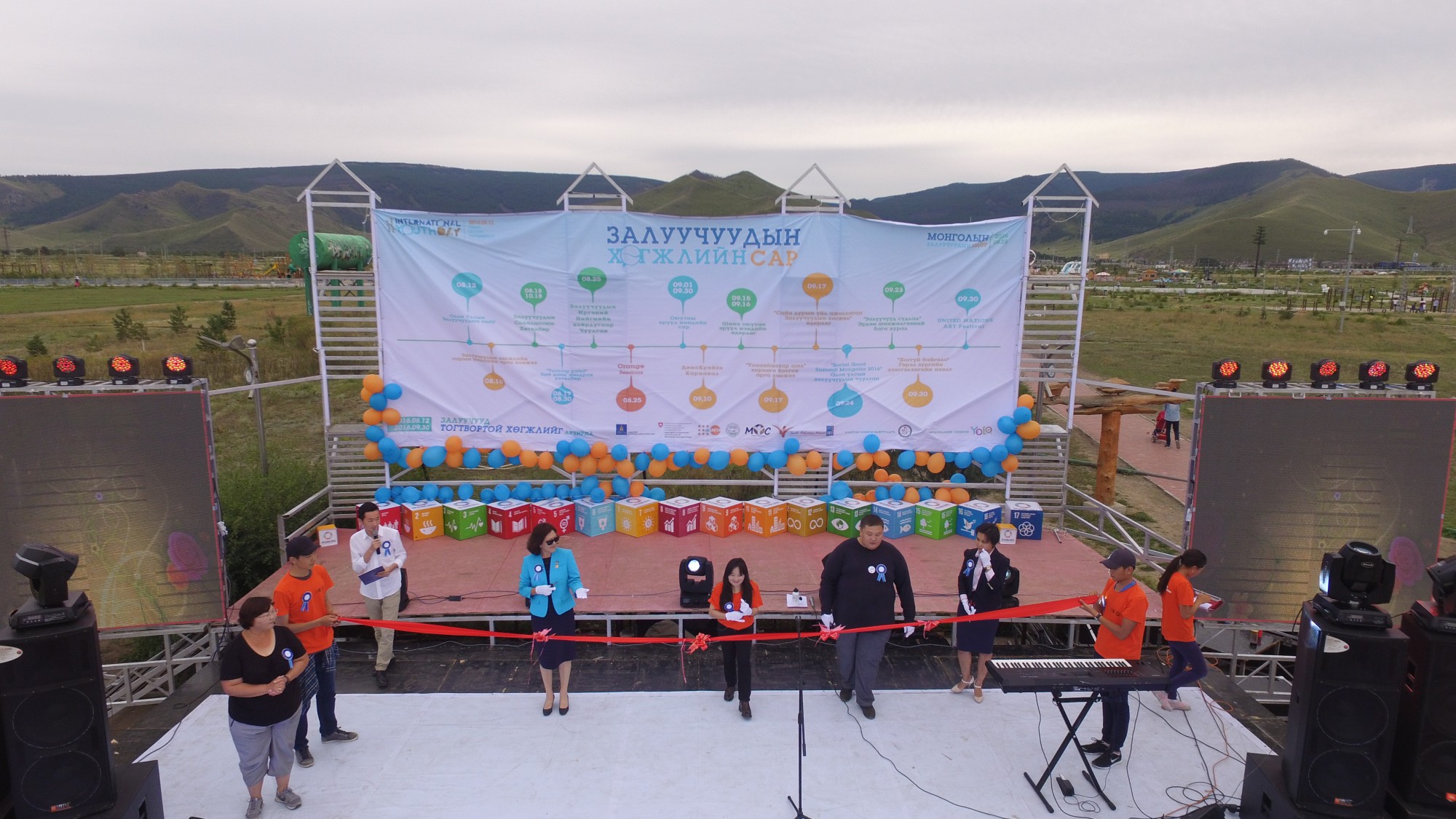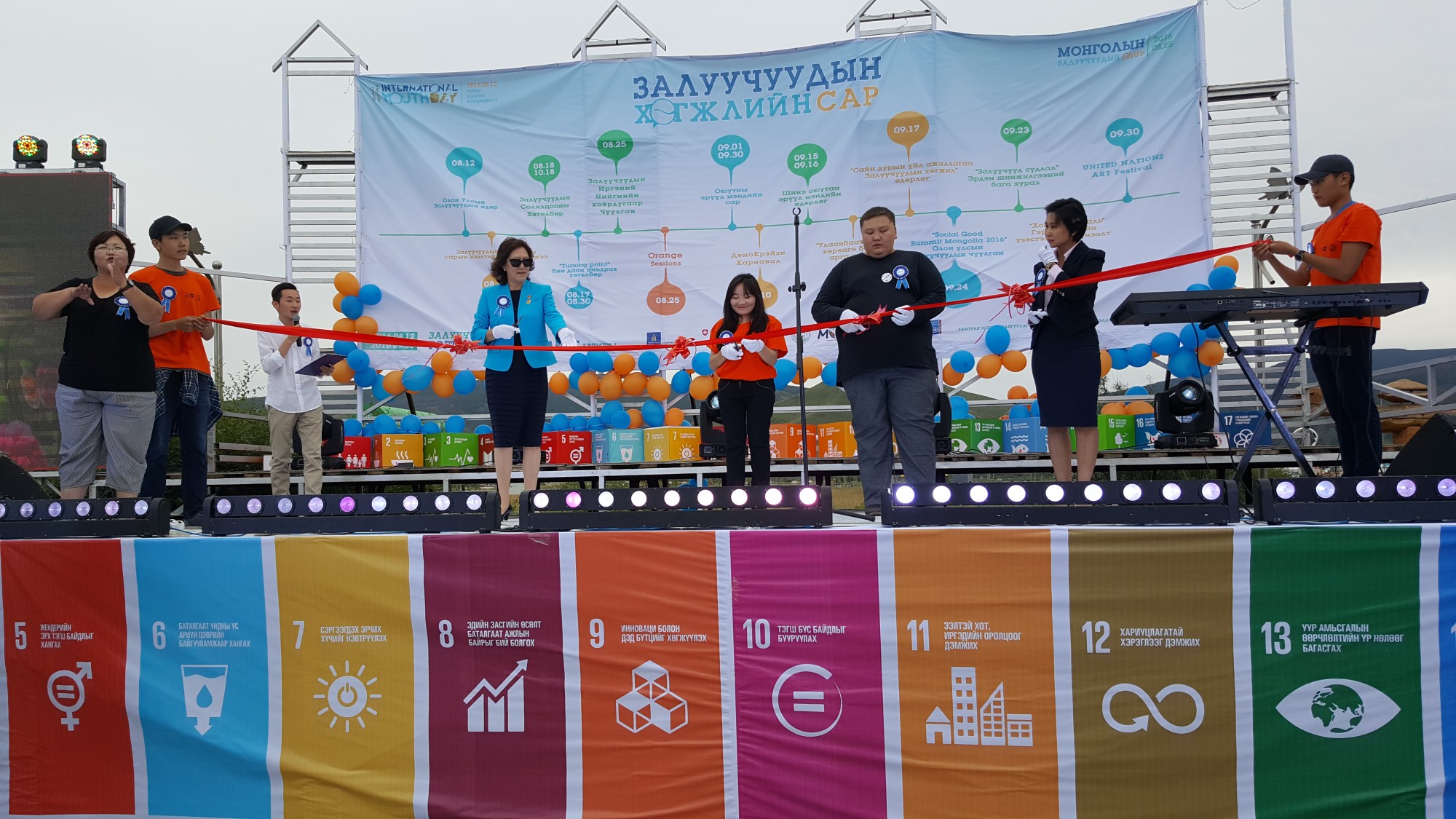 2016 оны есдүгээр сарын 30 хүртэл үргэлжлэх Залуучуудын хөгжлийн сарын аян “Залуучууд тогтвортой хөгжлийг авчирна”, “Залуучуудын хөгжлийг дэмжсэн бодлого, төсвийн хуваарилалтыг бий болгоё” уриан доор эхэлж байна. Энэ хугацаанд жил бүр уламжлал болгон зохиодог Залуучуудын солилцооны хөтөлбөр, Залуучуудын Иргэний нийгмийн (хоёрдугаар) чуулган, Orange sessions, “Улаанбаатар шөл” хөрөнгө босгох арга хэмжээ, Демокрейзи Карнавал, Social Good Summit, Шинэ Оюутан эрүүл мэндийн өдөрлөг, ”Залуучууд судлал” эрдэм шинжилгээний бага хурал, “Сайн дурын үйл ажиллагаа-Залуучуудын хөгжил” өдөрлөг, “Хоггүй байгаль” гэрэл зургийн уралдаан зэрэг олон арга хэмжээг НҮБ, иргэний нийгмийн болон залуучуудын байгууллагууд зохион байгуулна.