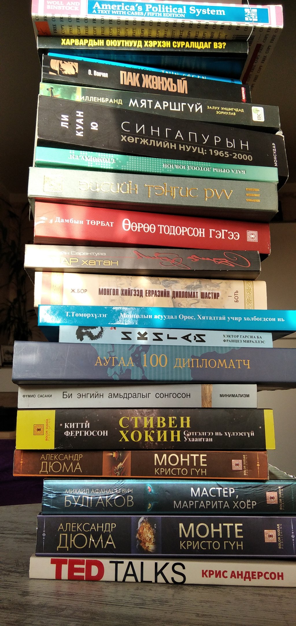 Номын шүүгээ маань өнгөрсөн жилийн номын үзэсгэлэн худалдаа, номын хямдрал болон бэлгэнд авсан номуудаар дүүрсэн байв. Заримыг нь бүр нээж ч үзээгүй байлаа.