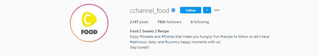 Тайлбар: Энэ жагсаалтад багтсан бусад хаягуудаас ялгаатай нь @cchannel_food хаягт ихэнхдээ идэхэд ч хайран, эгдүү хүргэм амттаны жор нийтлэгддэг. Солонгын өнгөтэй цэлцэгнүүрэн бялуу, пастел өнгийн хөөсөн чихэр, аварга том ореотой бялуу гэх мэт сонин содон амттаны жорыг энэхүү хаягаас аваарай.