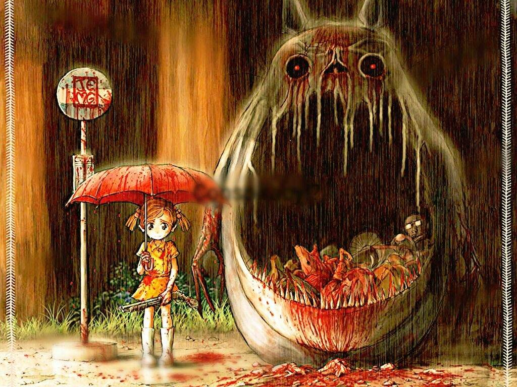 Маш олон хүмүүс өхөөрдөм хөөрхөн эгч дүүс болон ойн сахиус Тоторогийн тухай өгүүлэх энэхүү уран бүтээлийн ард аймшигт түүх нуугдаж байгаа хэмээн бат итгэсэн байдаг. Тэдний үзэж буйгаар, "Тоторо нь "Үхлийн Бурхан" учраас зөвхөн нас барсан эсвэл тун удахгүй амьсгал хураах гэж буй хүмүүст л харагддаг. Үүнийг нь мэдээгүй эгч дүүс түүнтэй нөхөрлөдөг. Улмаар Мэй алга болж, эгч Сацуки нь түүнийг маш удаан хайсан ч шаахайнаас нь өөр зүйлийг олдоггүй. Хүмүүс уг шаахайг дүүгийнх нь шаахай гэж хэчнээн тайлбарласан ч Сацуки үүнд итгэхийг хүсээгүй учир Тоторотой уулздаг. Ингээд Тоторо Сацукиг мууран автобусаар үхэгсдийн ертөнц рүү хүргэж, дүүтэй нь уулзуулсан. Киноны төгсгөлд ээж нь Тоторо, Мэй, Сацуки нарыг хэвтэж буй эмнэлгийнхээ дэргэдэх модон дээр сууж байгааг олж хардаг ч аав нь хардаггүй. Сацуки, Мэй хоёрын ээж тун удахгүй нас барах гэж байсан учраас л тэднийг харж чадсан. Мөн уг үзэгдэлд охидыг огт сүүдэргүйгээр дүрсэлсэн нь тэднийг аль хэдийнэ нас барсныг харуулж байна".