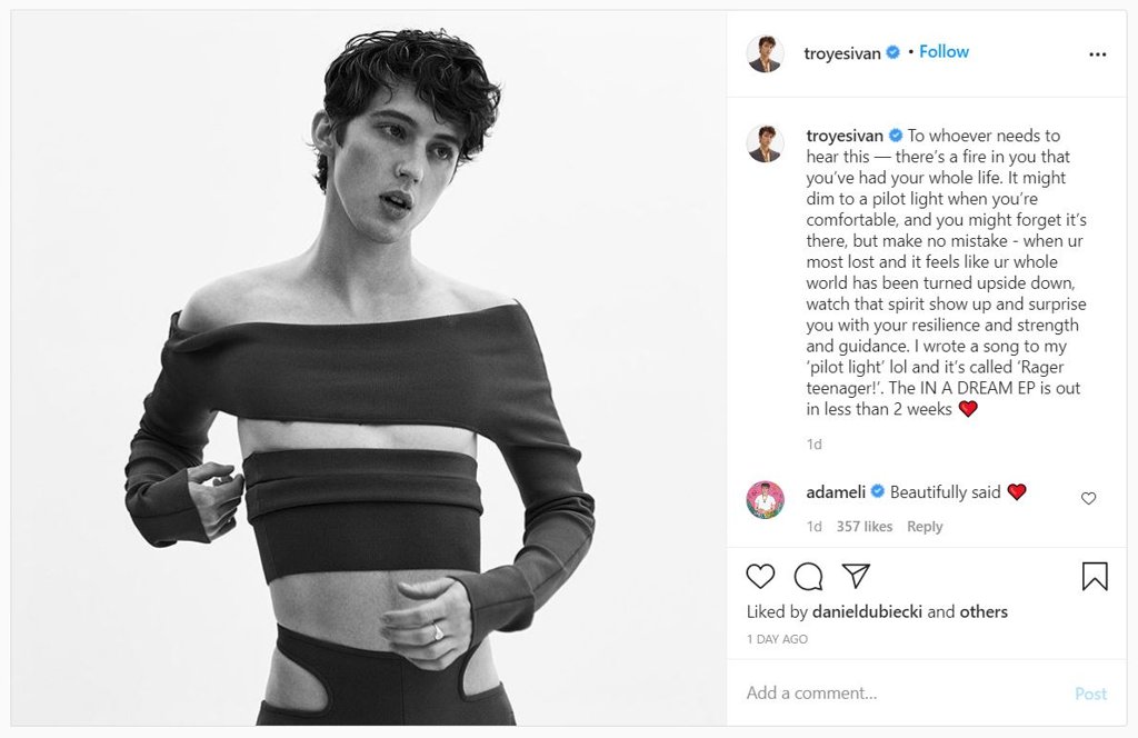 Дуучин Troye Sivan өнгөрсөн долоо хоногт Инстаграм дагагчидтайгаа их л "өвөрмөц" загварын цамцтай зургаа хуваалцсан бөгөөд шинэхэн цомгийнхоо талаар багахан дурдаад амжжээ. Зургийнхаа тайлбарт:
