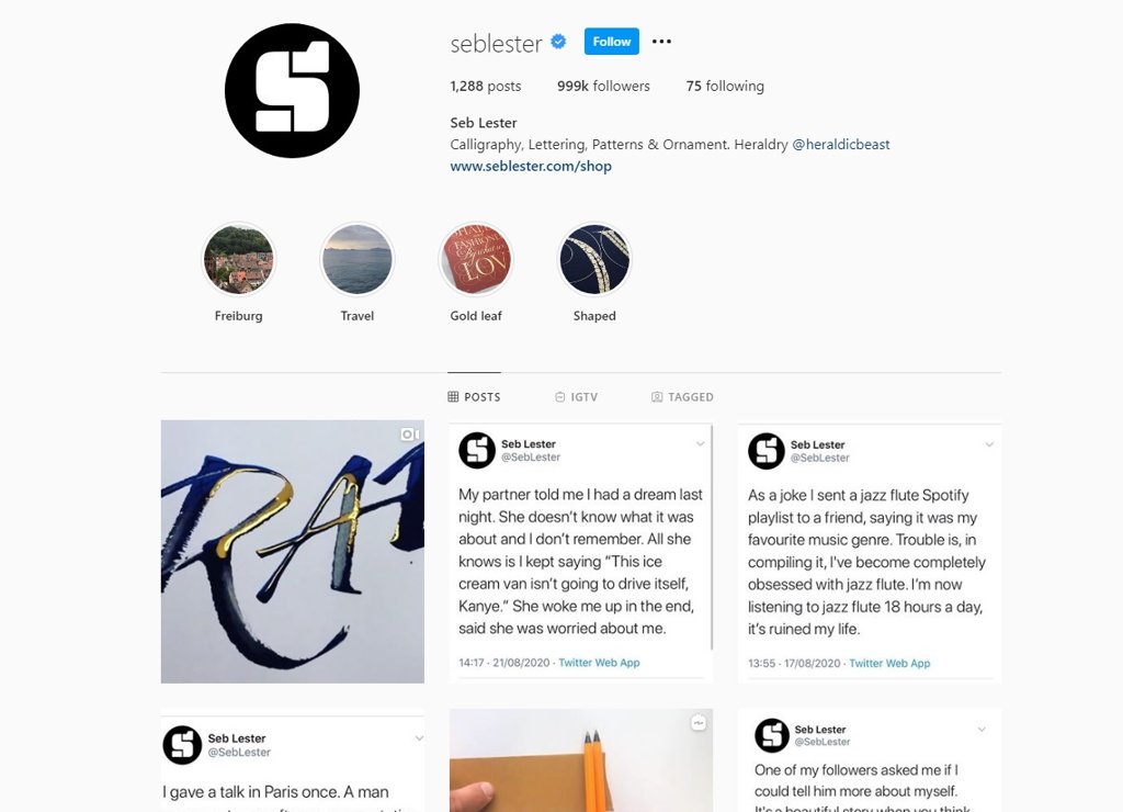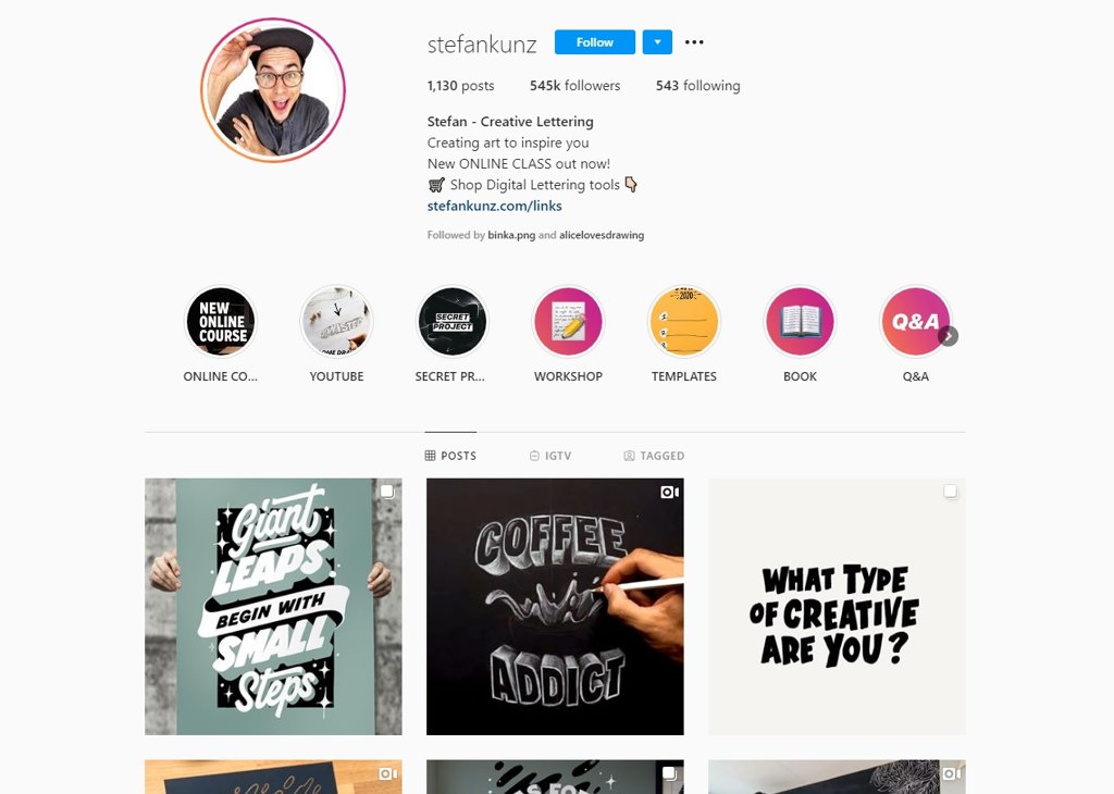 Гэгээлэг өнгө болон эгдүү хүргэм фонтуудын хослолыг энэхүү хаягаас харж болно. Инстаграм хаягаа идэвхтэй хөтлөхөөс гадна уран бүтээлүүдээ үргэлж бичлэгэн хэлбэрээр нийтлэдэг учир суралцахад ч, харахад ч тааламжтай.