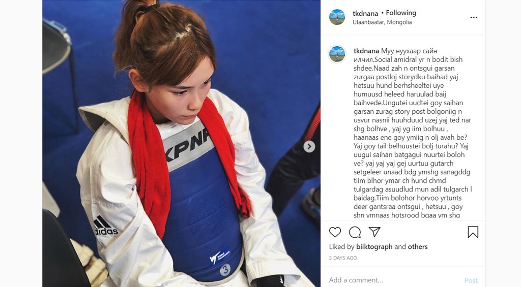 "Төгс" амьдралаар амьдарч буй "төгс" хүмүүсээр дүүрэн Инстаграм ертөнц биднийг хөгжөөхөөс илүүтэйгээр өөрийгөө голоход хүргэх нь цөөнгүй. Тэгвэл таеквондоч Нана маань өөрийн Инстаграм хуудаснаа ийн нийтэлжээ: