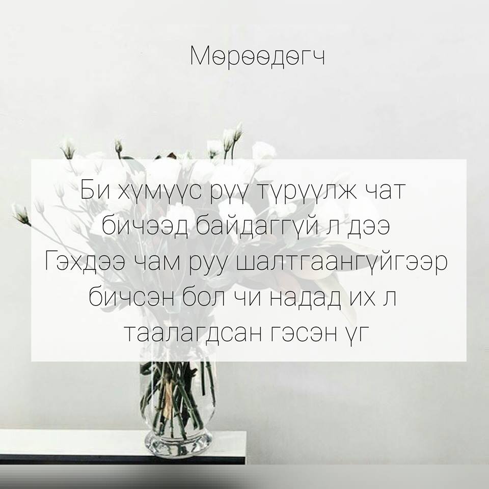 Түүнчлэн би ном унших их дуртай, шүлэг өгүүллэг ч бичдэг. Мөн роман бичихийг оролдож байгаа. Номоос уншсан, өөрт таалагдсан үгийг эшлэл болгож бусадтай хуваалцах их дуртай. Одоогоор пэйж маань 27 мянга орчим лайктай.