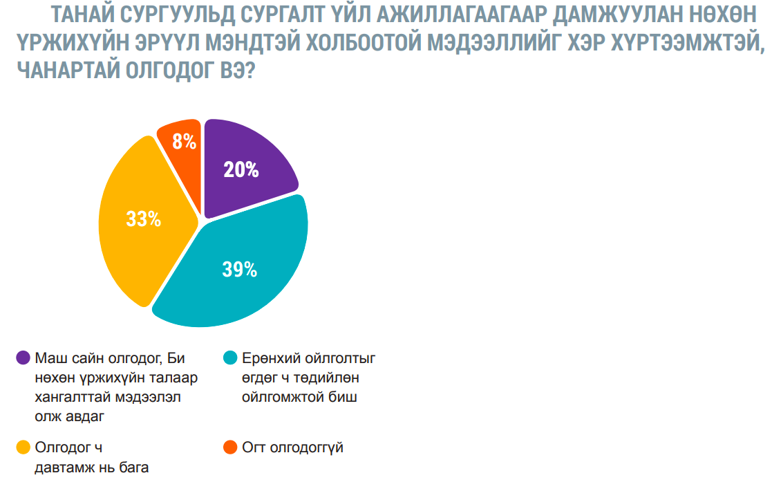 ТАНАЙ СУРГУУЛЬД СУРГАЛТ, ҮЙЛ АЖИЛЛАГААГААР ДАМЖУУЛАН НӨХӨН ҮРЖИХҮЙН ЭРҮҮЛ МЭНДТЭЙ ХОЛБООТОЙ МЭДЭЭЛЛИЙГ ХЭР ХҮРТЭЭМЖТЭЙ, ЧАНАРТАЙ ОЛГОДОГ ВЭ?