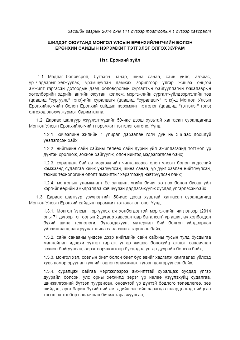 Тэтгэлэгт нэр дэвшигчийн материалыг 11 дүгээр сарын 15-ны дотор Ерөнхийлөгчийн Тамгын газарт буюу Төрийн ордны шуудангаар хүлээн авна.