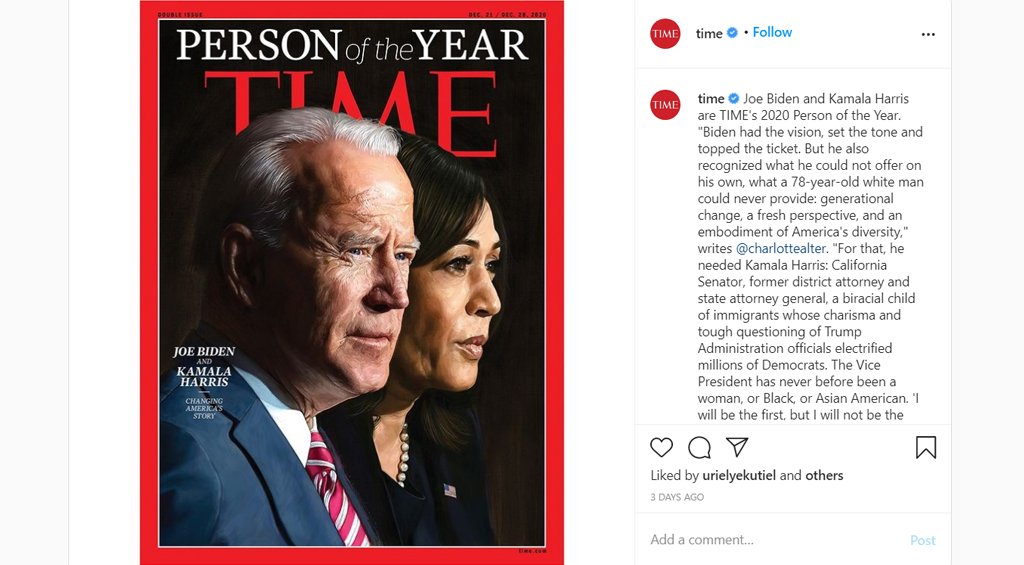 Шинэхэн оноо угтаж, хуучин оноо үдэх цаг ойртохтой зэрэгцэн оны шилдгүүд тодорсоор байна. “Time” сэтгүүлийн зүгээс ч мөн оны онцлох эрхмүүдийг нэрлэсэн бөгөөд 2020 оны онцлох хүнээр АНУ-ын шинэ ерөнхийлөгч Joe Biden болон анхны эмэгтэй дэд Ерөнхийлөгч Kamala Harris нар тодорчээ!