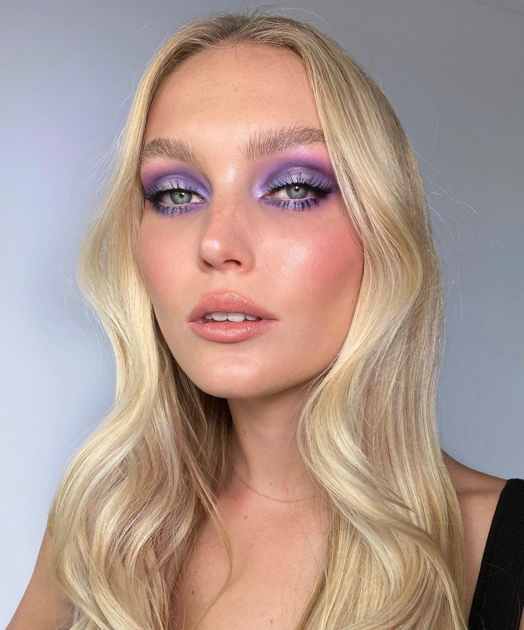 Лаванда цэцгийг санагдуулам нил ягаан өнгөөр нүдээ будаж, үл ялиг бараан өнгөөр нүдээ хүрээлээрэй. Яг л зураг дээрх шиг.