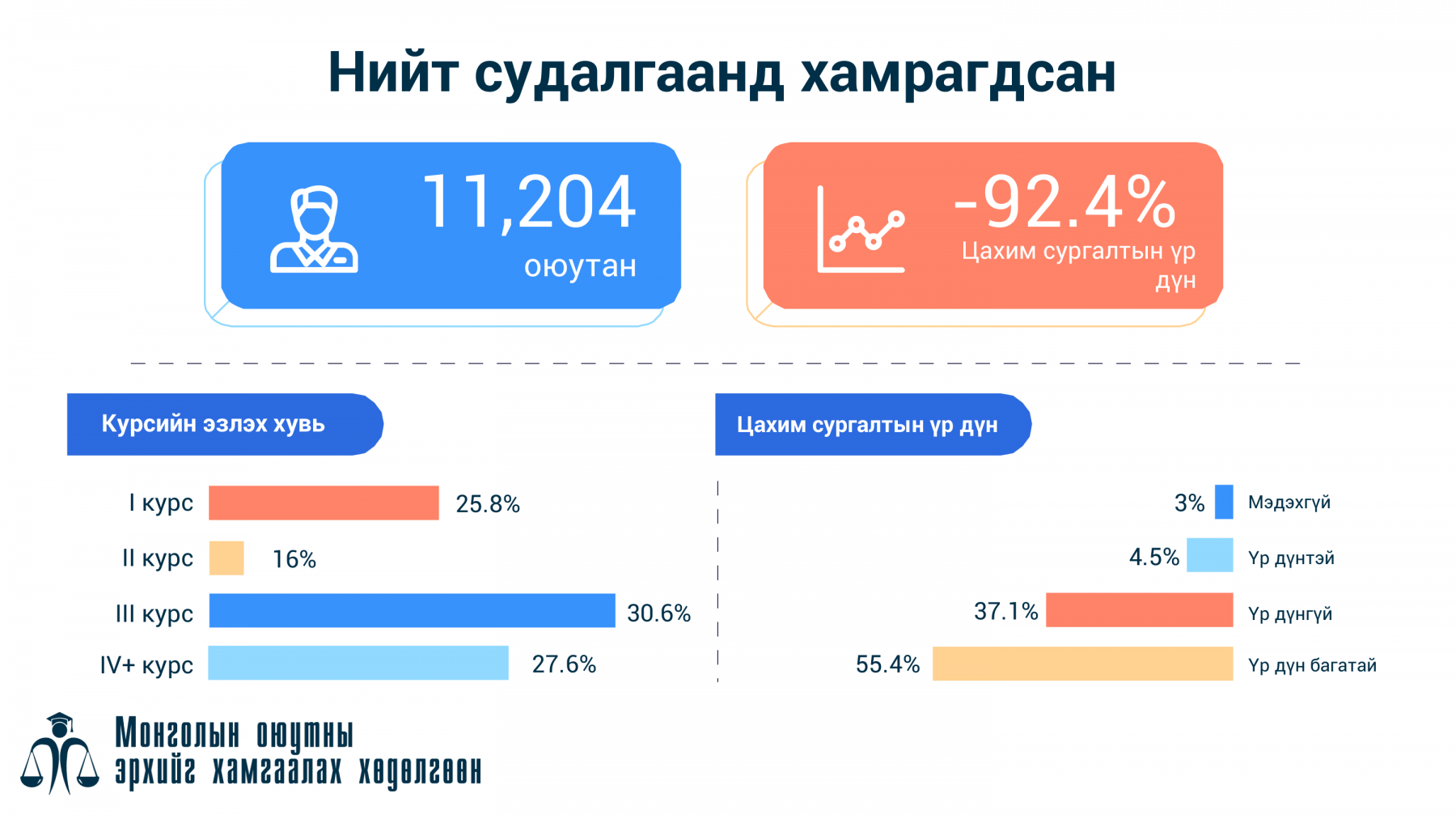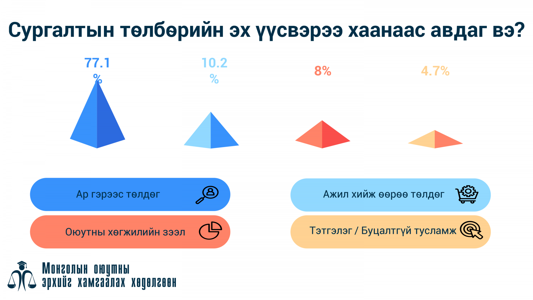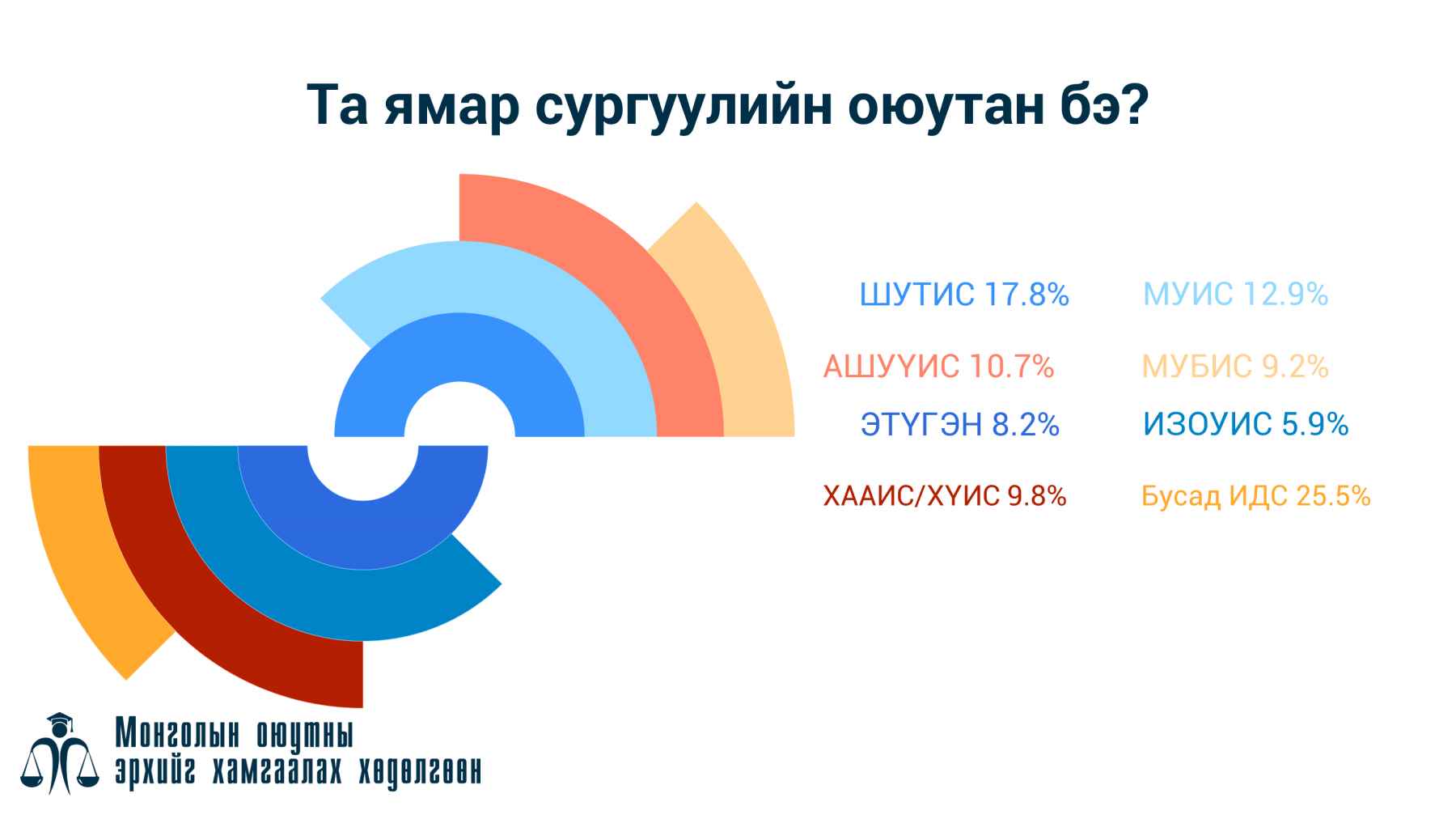 “Монголын оюутны эрхийг хамгаалах хөдөлгөөн”-өөс хийсэн судалгааны үр дүнгээс: