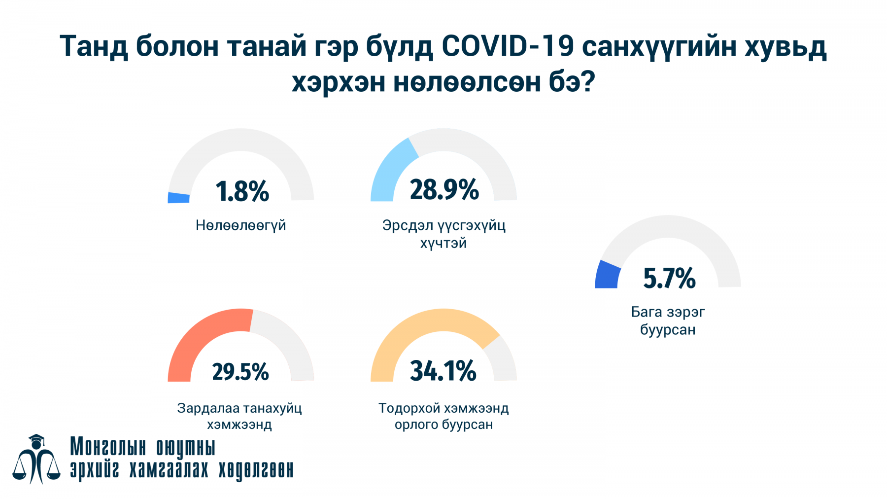 Манай гэр бүл гэлтгүй ихэнх айл өрхөд эдийн засгийн хямрал тохиож байгаа байх. Миний хувьд гэр бүлээсээ тусдаа амьдардаг учраас хичээлээс гадуур цагийн ажил хийж хувийн санхүүгээ босгодог. Хөл хорионд орсноос хойш ажлаа хийж чадахгүйд хүрч, цалингийнхаа ихэнх хувийг авч чадахгүй байгаа.