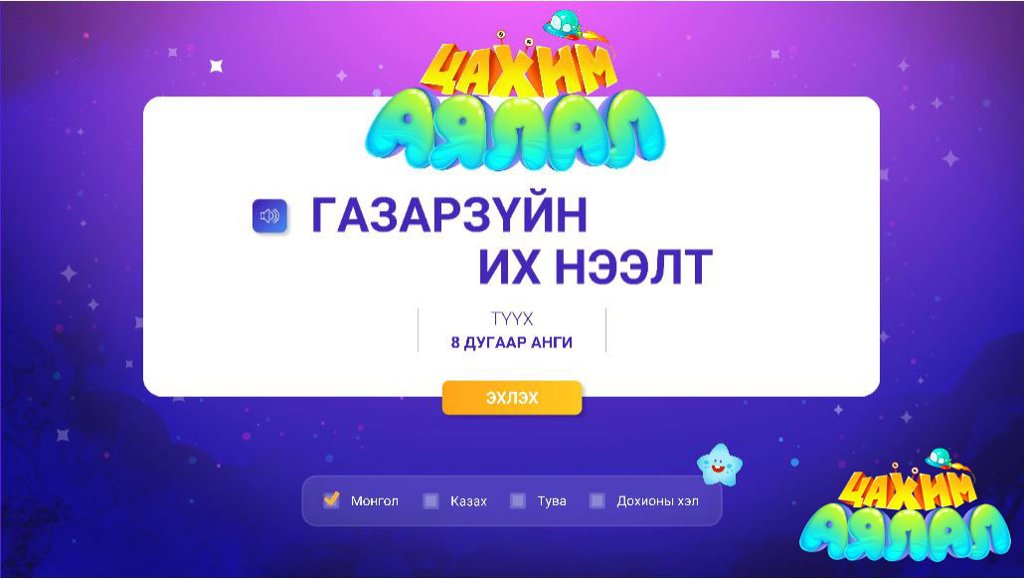 Энэ удаад бид та бүхэнд интерактив хичээлийн жишиг контент буюу 8-р ангийн "ГАЗАР ЗҮЙН ИХ НЭЭЛТ" хичээлийг хүргэж байна. Сонирхуулахад, ямар ч насныхан энэхүү хичээлийн асуултуудад хариулж, газар зүйн мэдлэгээ шалгах боломжтой юм шүү.