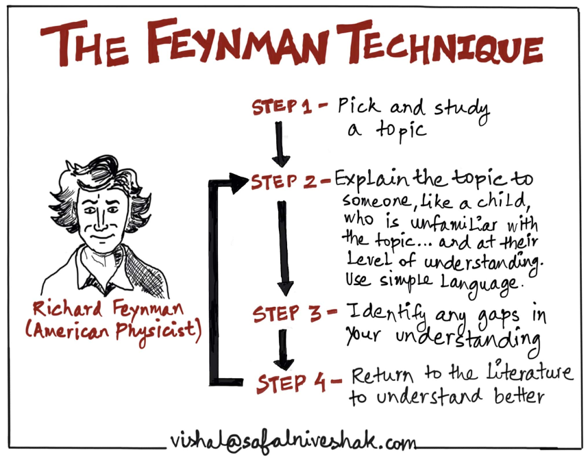 Суут физикч Ричард Фэйнман Принстоны их сургуульд суралцаж байх үедээ энэхүү техникийг боловсруулж байжээ. Тухайн үед тэрээр хамт суралцаж буй математикчдад физикийн онолуудыг ямар ч хэцүү нэр томьёо ашиглалгүйгээр хамгийн хялбар аргаар зааж тайлбарласан аж. Үүний үр дүнд тэрээр тухайн онолуудаас өөрийн сайн ойлгоогүй хэсгүүдийг тодорхойлж, тэдгээрийг улам нягталж судалсан гэдэг. Ингээд түүний боловсруулсан техникийн дагуу хичээллэхийн тулд дараах зааварчилгааг дагаарай.