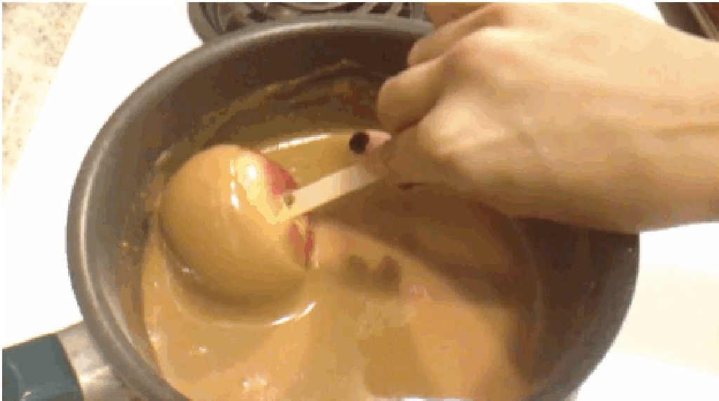 Сонгинод модон иш хатгаад бэлдчих. Шоколадтай бурам хайлуулаад сонгиноо дүрээд аваарай. Ингээд бурамтай сонгино тань бэлэн.