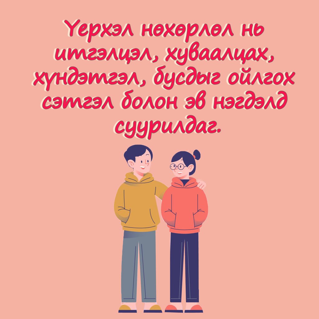 Бид цувралын эхний дугаарт Баянзүрх дүүргийн Гэр бүл, хүүхэд, залуучуудын хөгжлийн хэлтсийн сэтгэл зүйч Г.Гэрэлчимэгтэй “Үерхэл нөхөрлөл, хайр дурлал, романтик харилцаа” сэдвээр ярилцсан билээ. Харин энэхүү нийтлэлээр дамжуулан үерхэл, хайр дурлалын харилцаандаа баримтлах зарчим болон үнэ цэнтэй үерхлийг бий болгоход тань туслах зөвлөмжийг хүргэж байна.