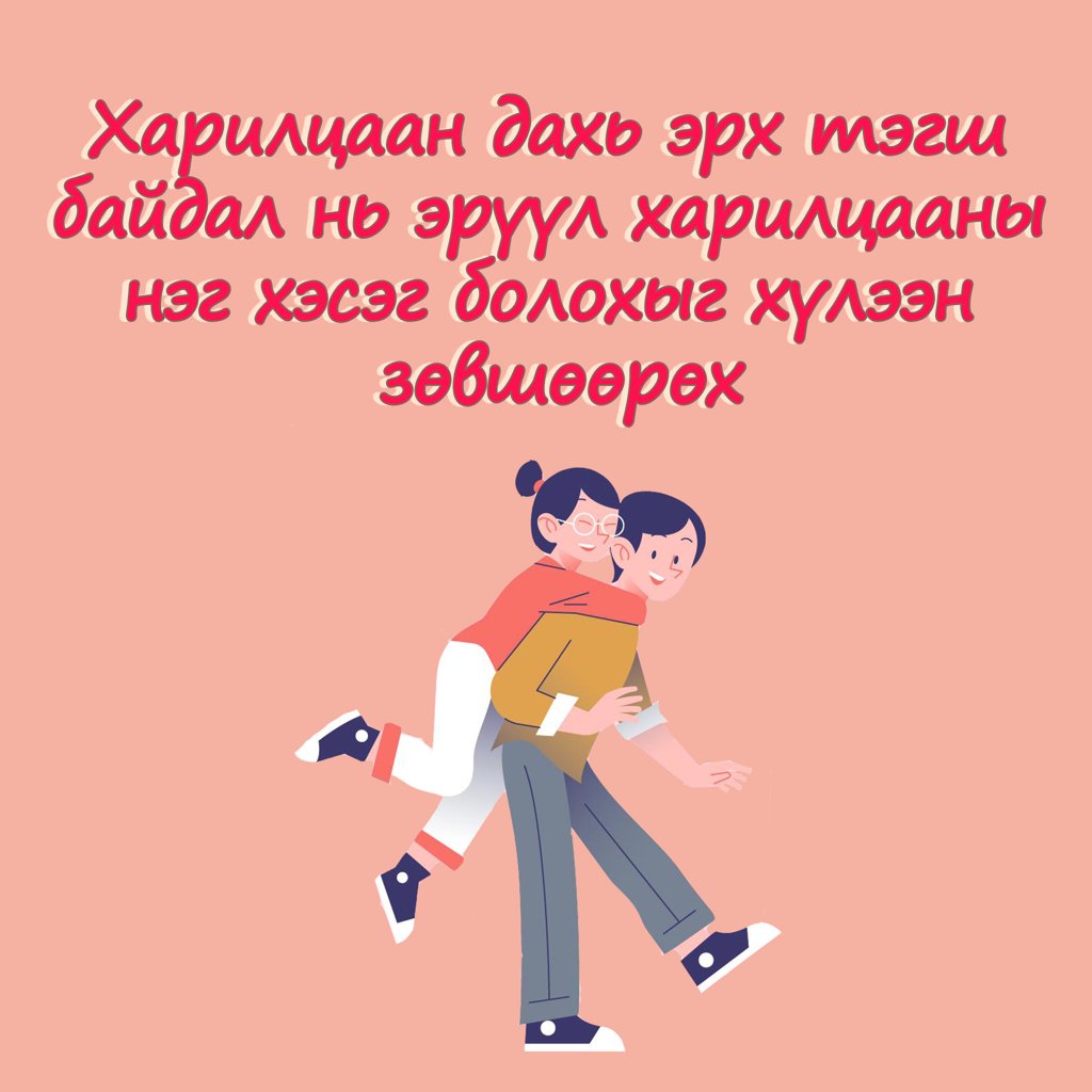 Хэрвээ чамд үерхлийн талаар тулгамдаж буй асуудал байгаа боловч хэнд хандаж зөвлөгөө авахаа мэдэхгүй байгаа бол 21 аймаг, 9 дүүрэг бүрд байрлах Залуучуудын хөгжлийн төвд хандан мэргэжлийн хүнээс зөвлөгөө тусламж авах боломжтой байдаг шүү. Дэлгэрэнгүй мэдээллийг “Залуучуудын хөгжлийн төв”  Фэйсбүүк бүлгэмд нэгдэн аваарай.