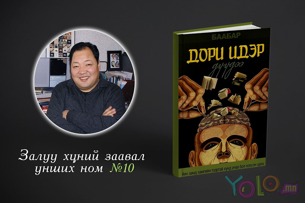 - Энэ ном бол олон сая сонголт дундаас зөв номоо хэрхэн сонгох арга замыг чинь хялбаршуулж, чиглүүлэх хөтөч гэж хэлж болно. Биднээс хавь илүү амьдралын туршлагатай, илүү мэдлэг боловсролтой хүний зөвлөгөө бидний амьдралд ямар их хэрэг болдог билээ. Түүнтэй адилаар Б.Баабарын санал болгож буй номууд амьдралыг харах өнцөг, алсын хараа, цаашлаад хувь хүний хандлага чинь зөв төлөвшихөд чухал үүрэг гүйцэтгэнэ.