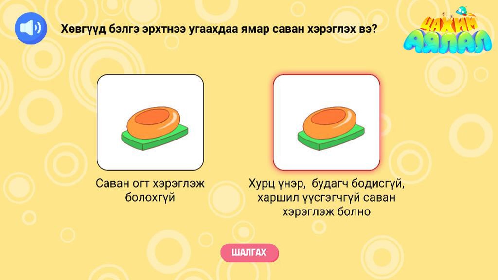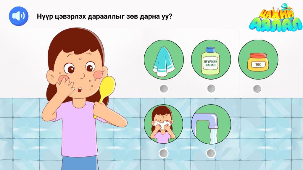 Тус хичээл нь охид хөвгүүдийн нүүрний арьс арчилгаа, биеэс эвгүй үнэр гарахад ямар арга хэмжээ авах, бэлгэ эрхтэнээ хэрхэн угаах, хүнд болон хөнгөнөөр бие засахдаа юуг анхаарах зэрэг бэлгийн ариун цэврийн талаарх сорилт бүхий асуултуудаар дамжуулж зөвлөгөө хүргэх интерактив хичээл юм.