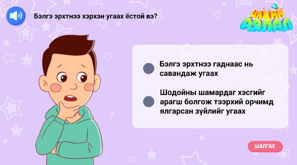 Энэхүү интерактив хичээлийг дундаас дээш ангийн сурагчид ч хийж болох ба казах болон тува хэлээр хүлээн авч болохоос гадна сонсголын бэрхшээлтэй хүүхдүүдэд зориулж дохионы хэлтэйгээр хүрч байна.