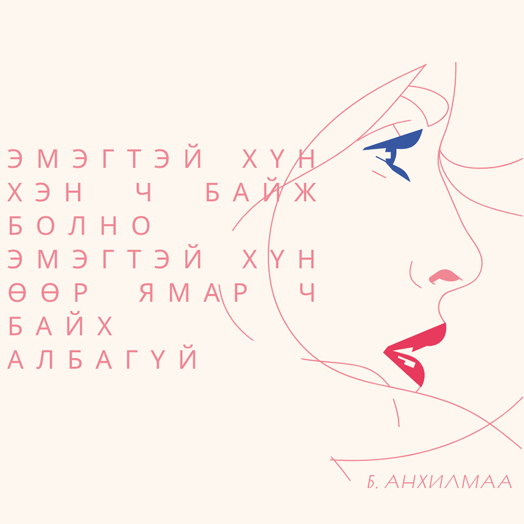 - Эмэгтэй хүн хэн ч байж болно. Хууль дүрэм зөрчөөгүй л бол эмэгтэй хүн хүссэн зүйлээ хийх эрхтэй. Иймээс эмэгтэй хүн ямар ч байх албагүй. Эмэгтэй хүнд зөвхөн бүх хүнд байдаг энгийн үүрэг, дүрмүүд л нөлөөлөхөөс биш багаас нь эхлээд өтлөх хүртэл нь “Охин хүүхэд байж”, “Ирээдүйд ээж болох байж”, “Эхнэр хүн байж”, “Эх хүн байж” гэх мэтчилэн зааж сургадаг нь үнэхээр утгагүй. Бүр танихгүй хүмүүс хүртэл “Ээж болох байж” гэхийг нь яана! Хүний хувийн амьдрал тэр хүмүүст тийм сонирхолтой санагддаг юм байх даа.