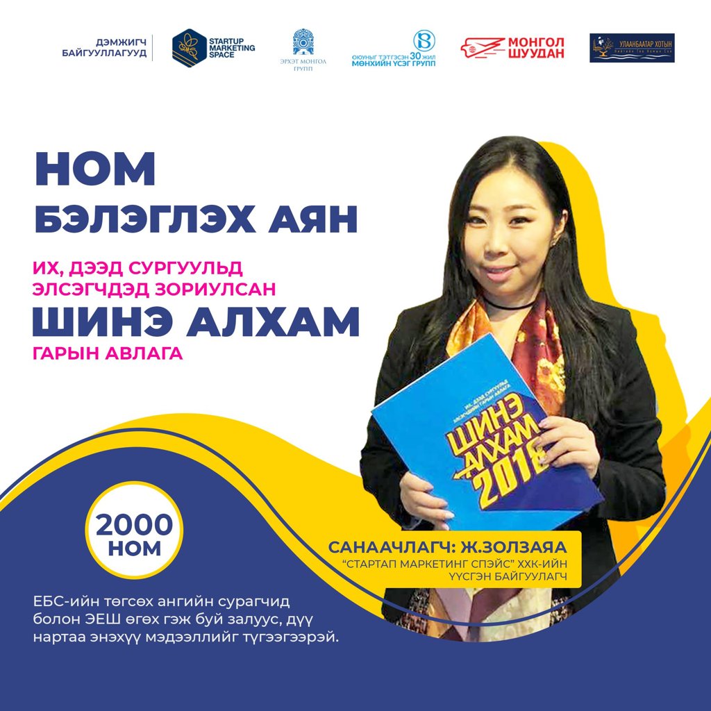 Монголын Үндэсний Маркетингийн Холбооны үүсгэн байгуулагч Ж.Золзаяа өөрийн төрсөн өдрийг тохиолдуулан энэ жил ЕБС-иа төгсөж буй 2,000 сурагчид мэргэжил сонголтын зөвлөгөө, гадаадын тэтгэлэгт хөтөлбөрүүдийн мэдээлэл, өмнөх оны ЭЕШ-ын тестийг нэгтгэсэн “Шинэ алхам” гарын авлагыг олгохоор болсон байна.