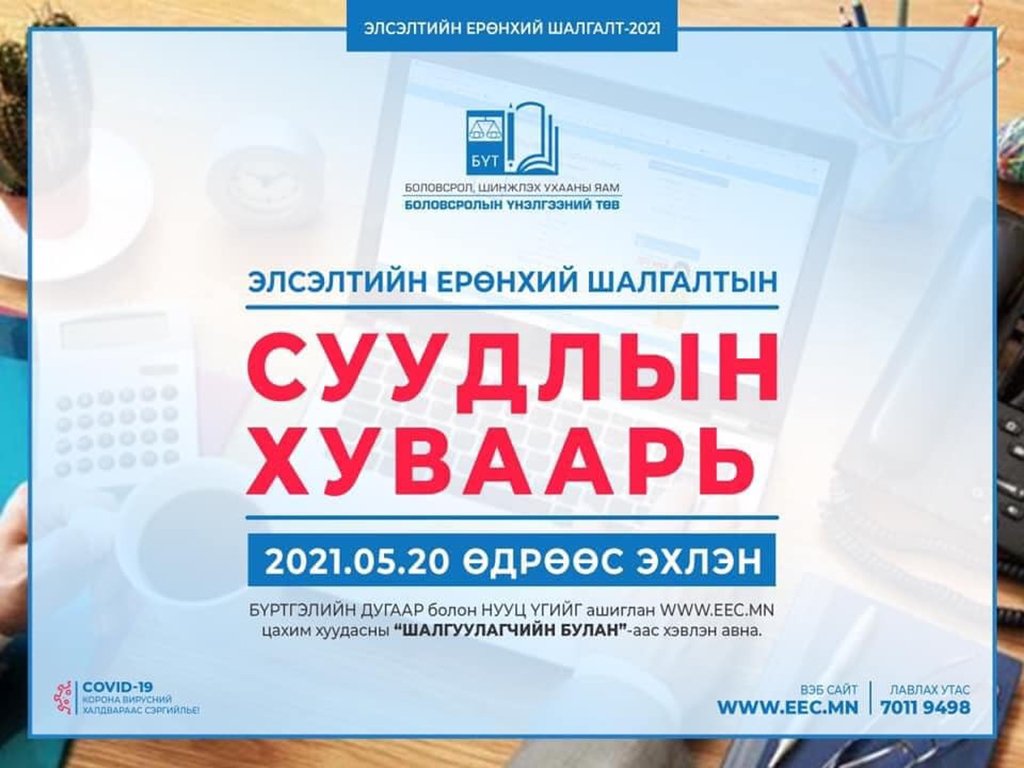 - ЭЛСЭЛТИЙН ЕРӨНХИЙ ШАЛГАЛТ 2021 -