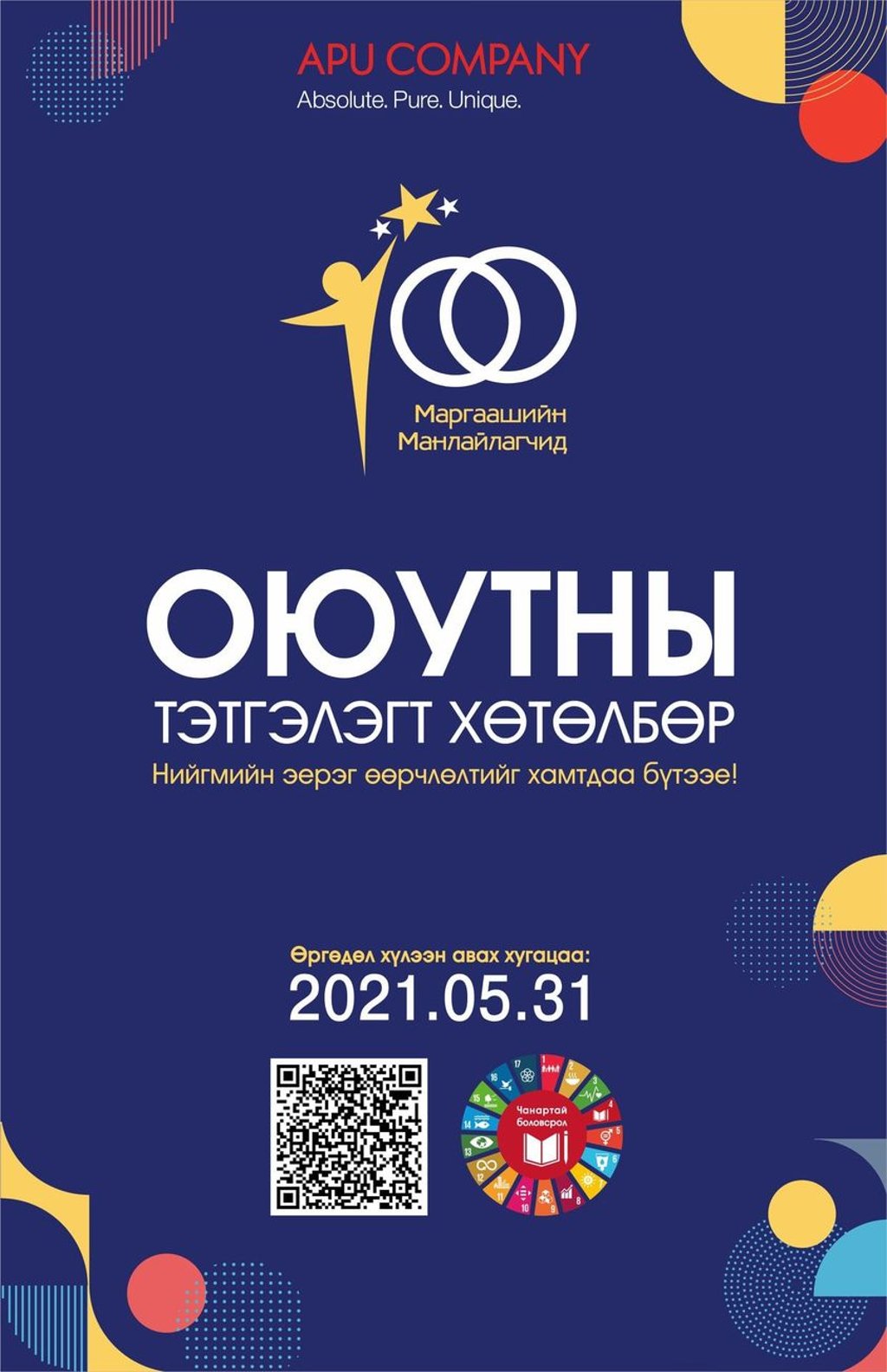 АПУ ХК нийгэмд эерэг өөрчлөлтийг авчрах манлайлагчдыг нээн илрүүлэх, тэднийг сурч боловсроход дэмжлэг үзүүлэх зорилгоор “Маргаашийн манлайлагчид” 100 оюутны тэтгэлэгт хөтөлбөрийг зарласан байна.