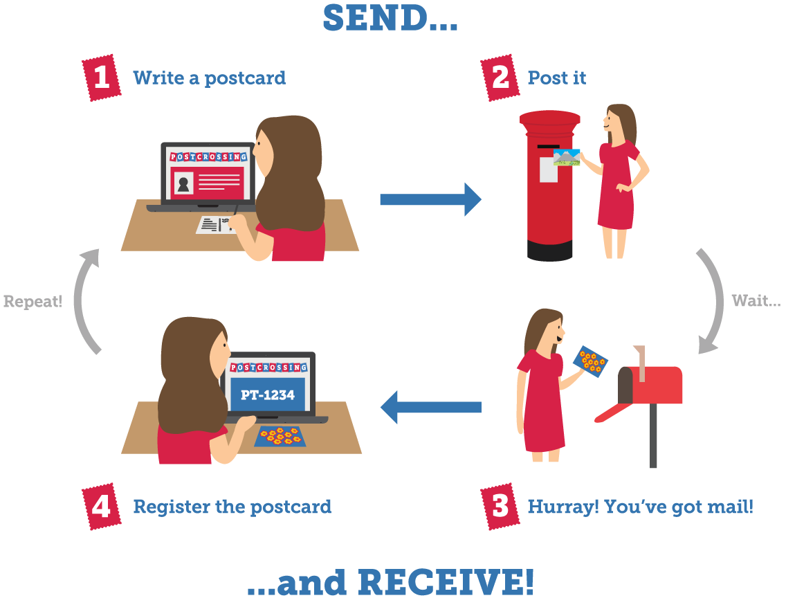 60 сая дахь ил захидлаа энэ оны эхээр солилцсон уг бүлгэмд элсэх нь хэн бүхэнд нээлттэй бөгөөд нэг ч төгрөг шаардагдахгүй. Та ердөө www.postcrossing.com хуудсанд нэвтэрч, доорх зурагт үзүүлсэн циклийн дагуу сайтаас өгсөн танихгүй нэгэн гадаад хүний хаяг руу ил захидал бичиж илгээгээд, хэсэг хугацааны дараа өөр нэгэн гадаад хүнээс захидал хүлээн авах юм.