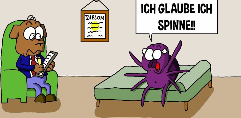 Тайлбар: Би яг галзуурсан байх аа, би галзуурах нь гэсэн утгатай хэлц. Яагаад германчууд аалз гэсэн юм бол? Магадгүй аалзыг эрт дээр үед галзуу гэж боддог байсан юм болов уу?