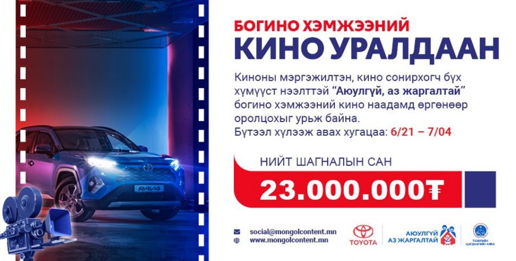 Урин дулаан цагт иргэд холын замд гарах, орон нутаг руу амарч зугаалахаар явах хөдөлгөөн ихэсдэгтэй холбоотойгоор зам тээврийн осол нэмэгдэх хандлагатай байдаг. Зам тээврийн ослын тоог бууруулах, жолооч нарыг замын хөдөлгөөнд соёлтой, зөв оролцохыг кино контентоор дамжуулан уриалах зорилготойгоор "Тоёота Сэйлс Монголиа" ХХК, "Монгол Контент" ХХК болон Тээврийн цагдаагийн алба хамтран "АЮУЛГҮЙ, АЗ ЖАРГАЛТАЙ" богино хэмжээний кино уралдааныг зарлаад байна.