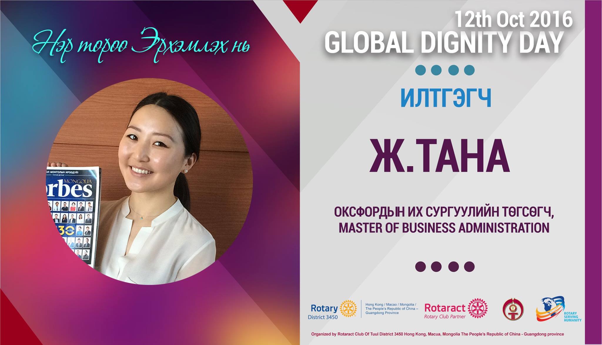 Туул Ротаракт клуб нь 4 дэхь жилдээ энэхүү өдрийг тэмдэглэн өнгөрүүлэх гэж байгаа бөгөөд 2016 оны аравдугаар сарын 12-ны өдрийн 9-12 цагт Улаанбаатар хотын ЕБС-ийн шилдэг сурагчдад зориулан "Нэр төр гэж юу вэ? Хэрхэн нэр төртэй амьдрах вэ? Нэр төрөө хэрхэн хамгаалах вэ?" сэдвийн дор Монгол улсын төрийн ордны их танхимд тэмдэглэн өнгөрүүлэх гэж байна.