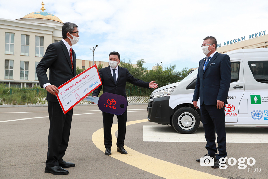 Тоёота Мотор Корпорац нийгмийн хариуцлагын хүрээнд Эх хүүхдийн эрүүл мэндийн үндэсний төвд хүн тээврийн HIACE автомашин гардуулж байна.