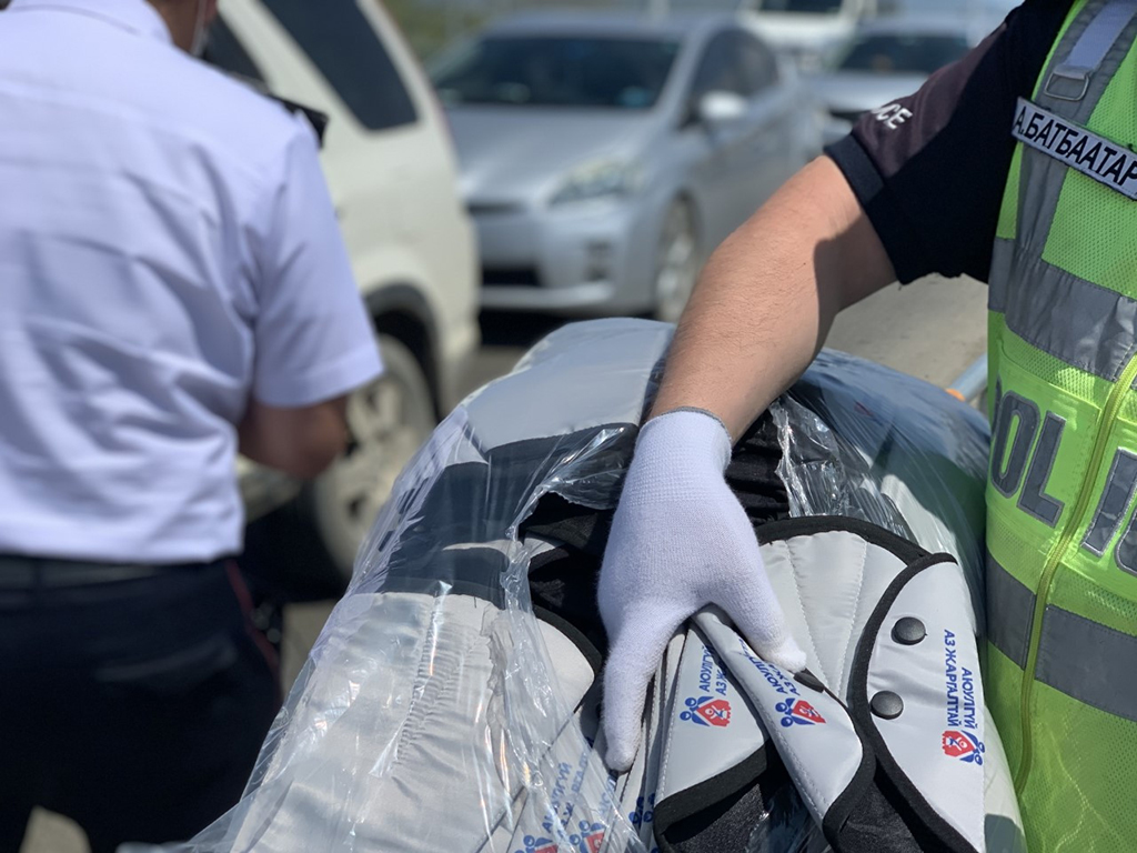 22-ын товчоогоор гарч буй жолооч нарт аюулгүй зорчих зөвлөмж мэдээллийг өгч, хүүхдийн суудлын бүс тохируулагчийг тарааж байна.