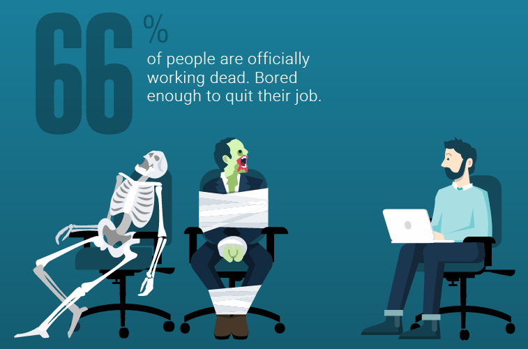 Нэг хэсэг нь дур сонирхолтой наймаагаа зовж байсан ч амжилттай хийж аз жаргалтай, бэл бэнчинтэй амьдарцгааж байхад нөгөө хөөрхий хэсэг нь хүчээр ажилласаар л. Ямар ч амьдралын идэвхгүй, “зомби” шиг аз жаргалгүй. Жишээ татахад Английн хөдөлмөр хариуцсан газраас хийсэн судалгаагаар гурван ажилтан тутмын хоёр нь ажлаа хаяхад бэлэн хэмжээнд хүртлээ ажлаасаа залхсан гэнэ. Мэргэжлээ зөв сонгосон бол ийм асуудал гарахгүй байсан байх аа.