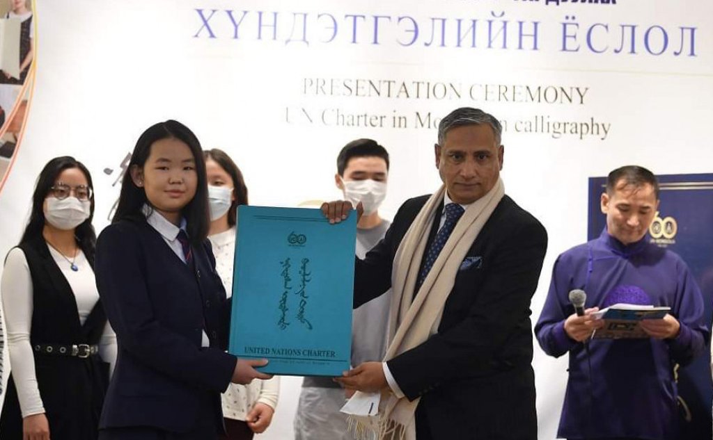 Монгол Улс НҮБ-ын бүрэн эрхт гишүүн болсоны 60 жилийн ойг тохиолдуулан 21 аймаг, Улаанбаатар хотыг төлөөлсөн монгол бичгийн шилдэг уран бичээч хүүхдүүд нэгэн хүсэл, зорилгын дор нэгдэн НҮБ-ын Дүрмийг анх удаа уран бичлэгээр урлан бүтээлээ.