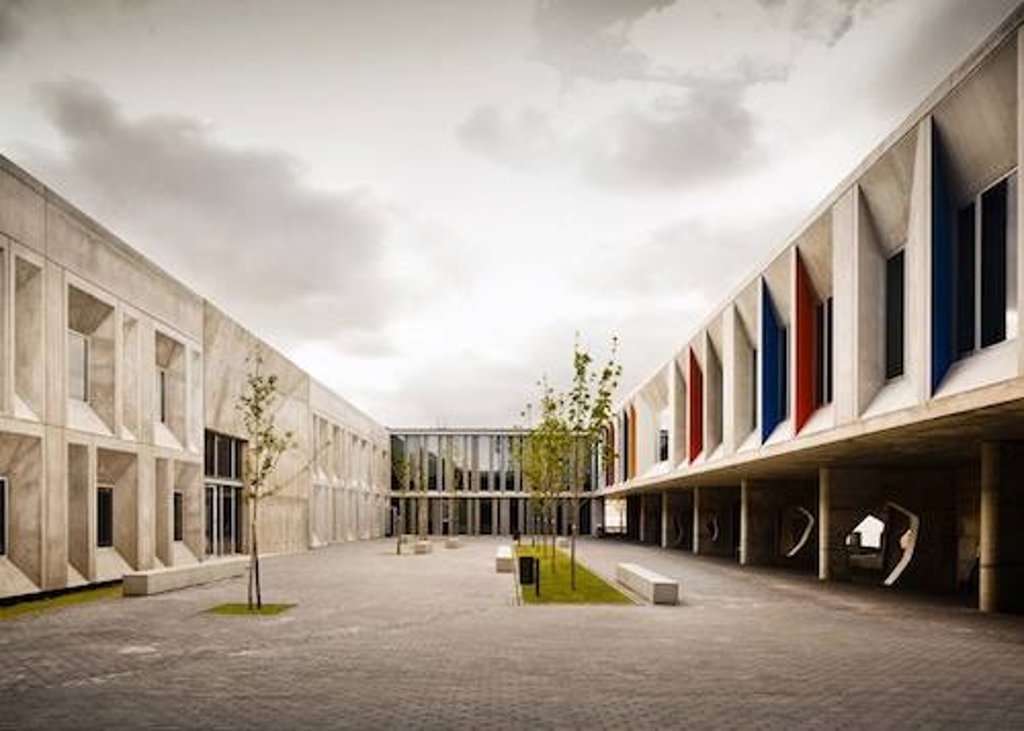 “CVDB Arquitectos” фирм гялалзсан шинэ төлөвлөгөөгөө танилцуулан, уг сургуулийн шийдлийг гаргаж 2012 онд ашиглалтанд оруулсан байна. Анхандаа бетонон гадаргуу нь хүмүүст маш хүйтэн санагдаж таагүй сэтгэгдэл төрүүлсэн ч янз бүрийн тод гэрэлтсэн өнгөнүүдийг ашиглаж геометрийн дүрснүүдийг нэмсэнээр хүмүүст илүү эрч хүчтэй дулаан сэтгэгдэл төрүүлэх болжээ.