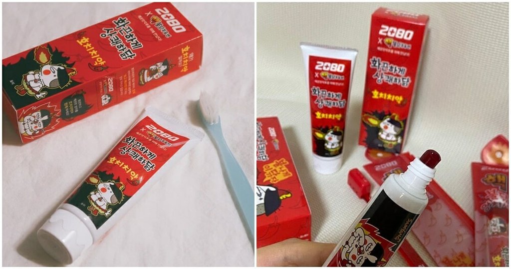 Өмнөд Солонгосын гоо сайхан, эрүүл ахуйн “Aekyung” компани бэлэн хоолны “Samyang Foods” компанитай хамтран халуун ногоотой шүдний оо зохион бүтээжээ. Уг бүтээгдэхүүн улаан өнгөтэй хэдий ч зах зээл дэх ижил төрлийн бүтээгдэхүүний адилаар амьсгалыг сэнгэнэсэн болгох, шүд цайруулах үйлчилгээ бүхий орцыг агуулсан аж.