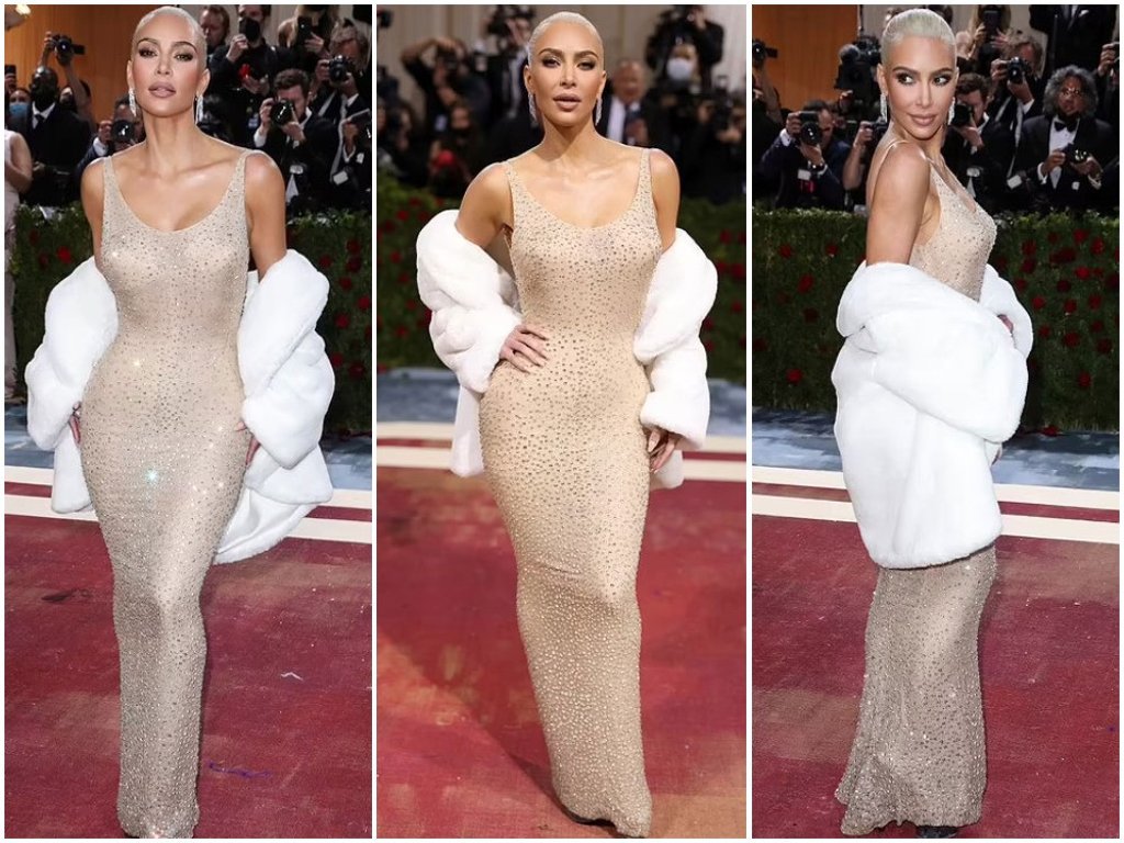Түүнийг Мэрилиний даашинзыг өмсөх гэж байгаа гэх таамаглал хэдэн долоо хоногийн өмнөөс гарч байсан юм. 41 настай Ким үсээ шаргал өнгөтэй болгож гоёмсог даашинзтай хослуулжээ..