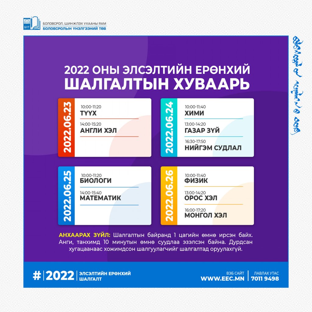 "Элсэлтийн ерөнхий шалгалт-2022" шалгалтын хуваарь гарлаа.