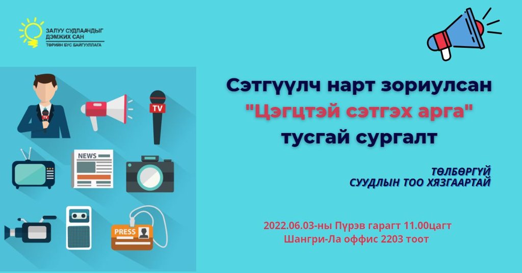 СЭТГҮҮЛЧ НАРТ ЗОРИУЛСАН "ЦЭГЦТЭЙ СЭТГЭХ АРГА" ТУСГАЙ СУРГАЛТ